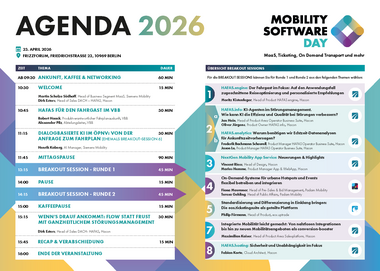 Tragen Sie sich den Mobility Software Day 2026 bereits jetzt mit einem Klick auf den SAVE THE DATE Button in Ihren Kalender ein.